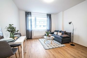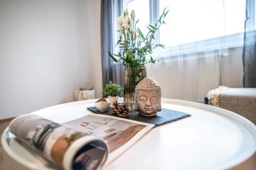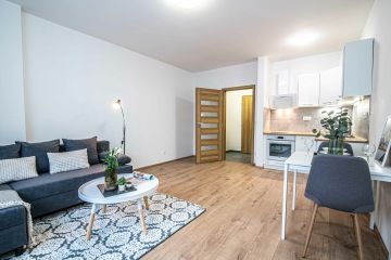 Home staging bytu ještě vonícího novotu. Práce obnášela zabydlení a nastylování nezařízeného interiéru. Tedy navezení a montáž veškerého nábytku a doplňků, profesionální nafocení včetně virtuální prohlídky. Doba příprav: 2 dny.