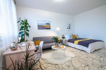 Tento byt si majitel přál pronajmout. Pozval si nás, protože se mu líbily naše prezentace nemovitostí. Byt byl zcela prázdný a potřeboval vymalovat a prosvětlit. Nábytek a doplňky prostor zútulnily a poskytly představu o možné dispozici bydlení. I na nás působil velmi příjemně a pronajatý byl za pár dnů.