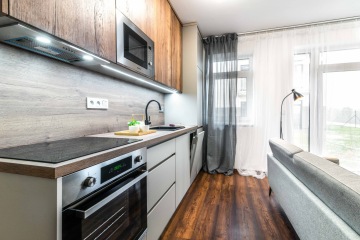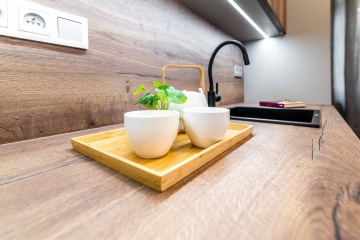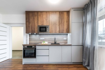 Home Stagingu předcházelo provedení klientských změn (elektřina, topení apod.), návrh a realizace kuchyní za spolupráce s truhláři.